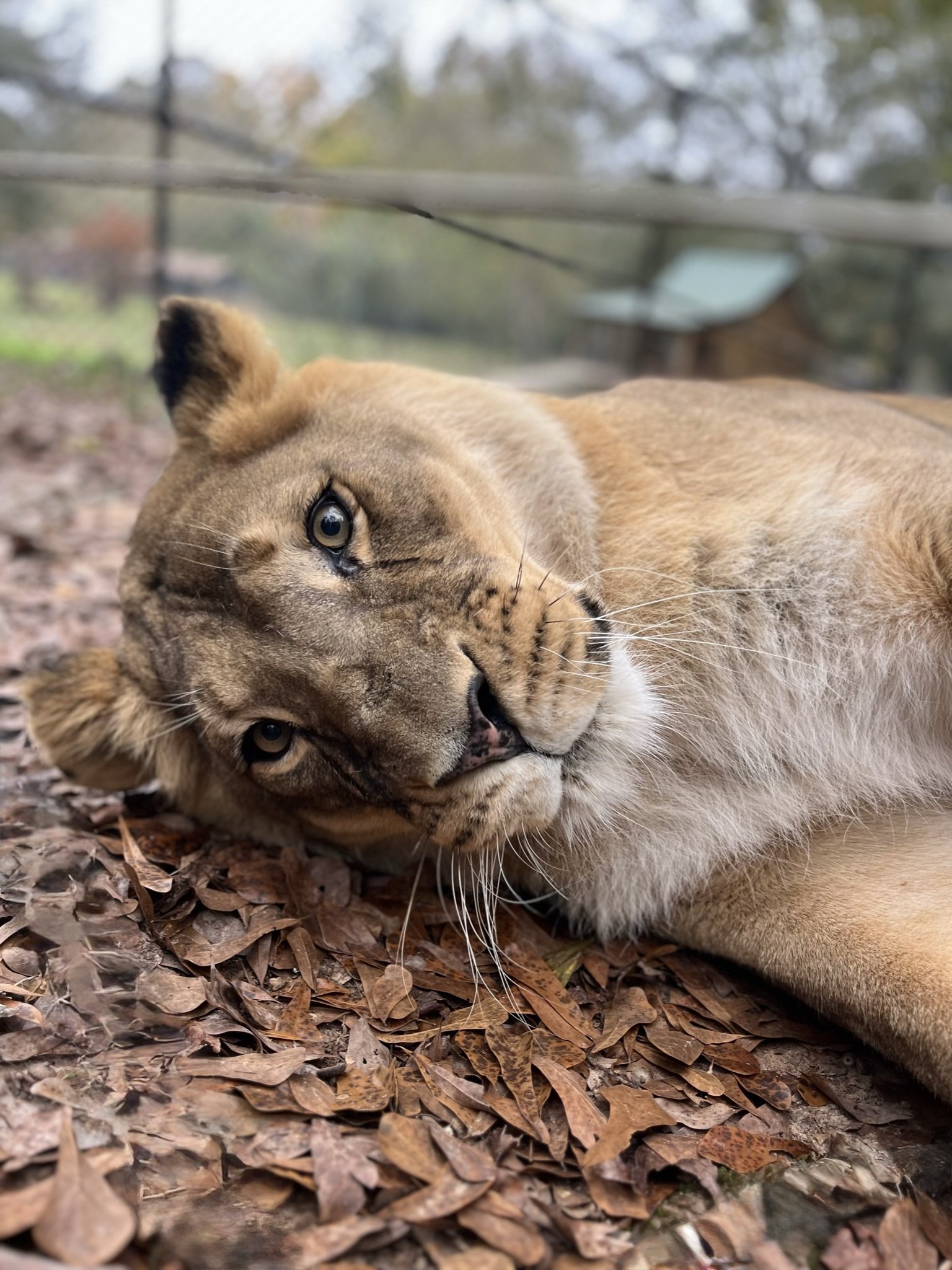 Lions have yellow-gold short fur that covers their entire body, including the nose, with long tails that have longer fur covering the end of the tail. Lions have large, brown, almond-shaped cat eyes with a dark brown liner around their eyes. They also have white whiskers just like tigers. Only male lions have a large amount of fur that surrounds their head, called a mane. The mane is helpful for claiming territory, for dominance in hunting, and for attracting mates.