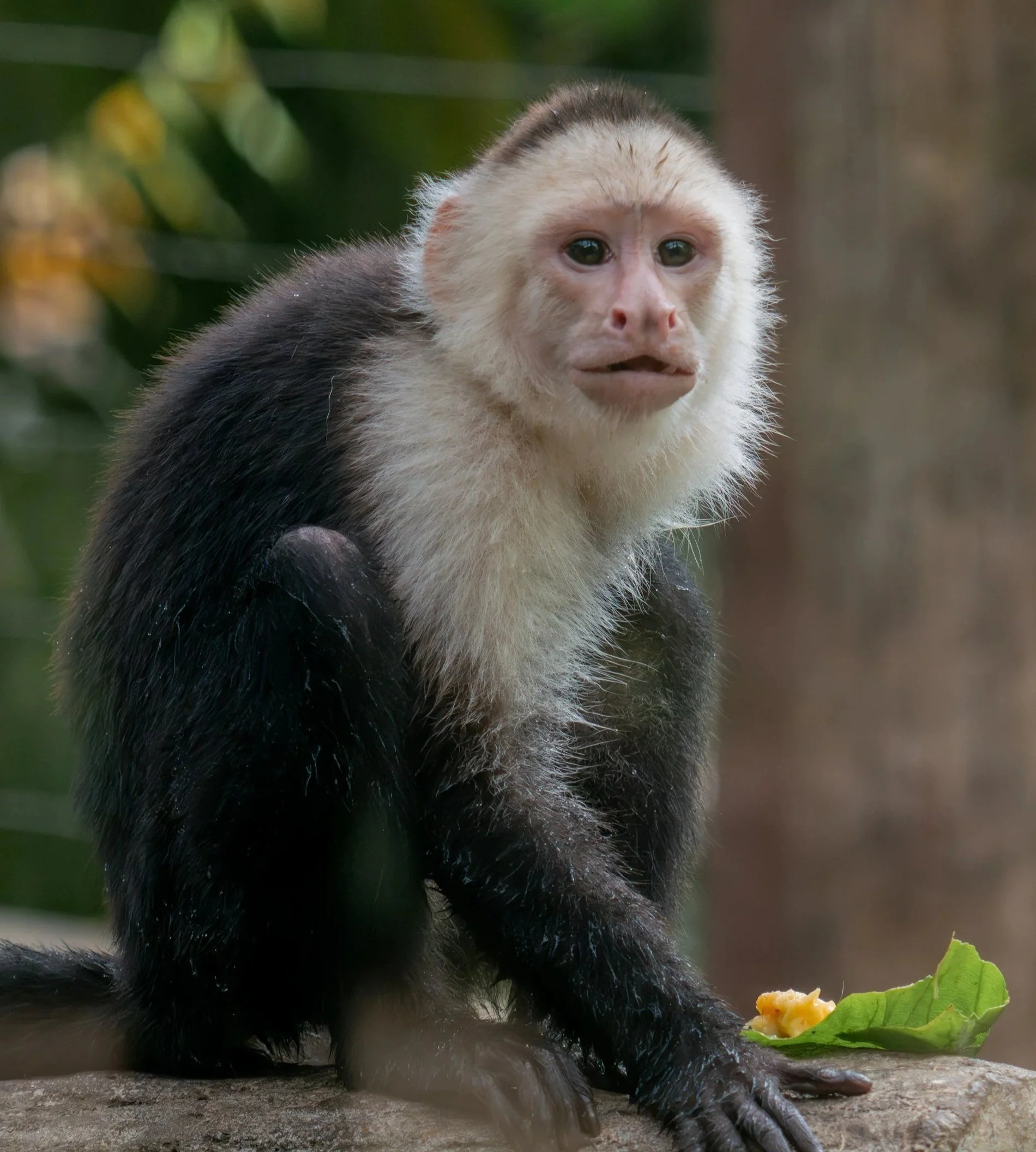 The white-faced capuchin, also known as the white-headed capuchin, is characterized by a distinctive black body and limbs, with a pale or white face, throat, and shoulders. Their expressive faces and high manual dexterity make them one of the most recognizable and behaviorally complex monkeys in Central and South America.